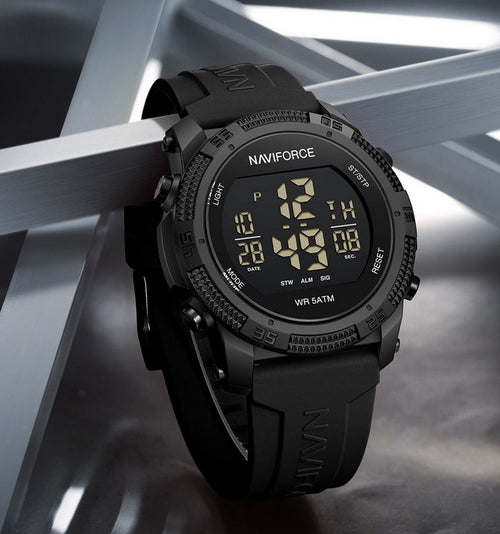 NAVIFORCE 7104 Digital Watch Silicone Strap Acrylic Case Sport Water Resistant Luminous Watch for Men with Alarm Feature